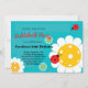 Cartão postal de feliz aniversário turquesa para jogador de Pickleball com joaninhas fofas de Pickleball. Cartão de RSVP no verso