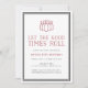 Planejar uma festa de aniversário na sua beco de boliche favorita? Escolha esses convites de aniversário divertidos com pinos de boliche vermelha com uma safra, efeito angustiante, uma borda dupla preta que atrai olhares e letras vermelhas e pretas correspondentes. Design apresenta "deixe os bons tempos rodarem" na tipografia vermelha moderna com os detalhes da sua festa abaixo.