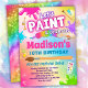 Tinta de vamos e comemore! Personalize seus próprios convites de aniversário de pintura em cerâmica com cores divertidas do arco-íris.