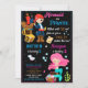 Sereia ou pirata O que você será? Este convite de aniversário para duas crianças, Pirate e Sereia, é para a festa de aniversário combinada! Ele apresenta um pirata bonitinho com uma nave pirata e o peito de ouro e uma bela sereia de cabelo rosa. Este convite funcionará perfeitamente em qualquer idade! Personalize facilmente os textos neste modelo de convite para torná-lo especial.