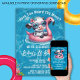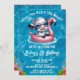 Convite de aniversário de piscina de Vaca para uma divertida festa de aniversário de verão, descarregamento digital ou convite para impressão. Personalize nomes, datas e informações.
