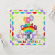Brilho e Cheery - gingham amarelo com pontos coloridos no arco-íris ao redor do cartão - uma nuvem pufa com animais plushie todos se divertindo - o pequeno carneiro pelúcia no meio com seus balões de festa. Personalizável e pode ser usado para a festa de aniversário de menino ou menina. Aqui está o envelope correspondente: