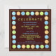 Círculos retrorados decorados com estrelas simples sobre um fundo castanho rico, fazem um convite legal para sua reunião! Cada linha pode ser alterada para atender às suas necessidades. Além disso, coordena-se perfeitamente com as etiquetas de endereço e autocolantes correspondentes.