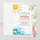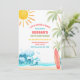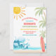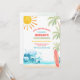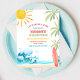 Crie ondas com este convite de aniversário de tema praia tropical, perfeito para crianças que celebram seu dia especial com estilo ensolarado. Com palmeiras vibrantes, ondas do mar, uma prancha de surfe e um sol alegre, este design define o tom para uma celebração divertida à beira-mar. Ideal para aniversários de verão, festas de piscina ou eventos com tema de surfe, é personalizável com os detalhes da sua festa para criar um souvenir único. Traga as vibrações da praia para a sua celebração e impressione os convidados com este convite colorido e festivo.