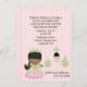 A convite de aniversário princesa da menina doce feita em rosa e verde. Gráficos de uma linda garota escura vestida de princesa ao lado de um bonito treinador de abóbora, com um fundo listrado rosa e branco. O texto da cinza escura é perfeitamente personalizável para personalizar o grande dia da sua filha.