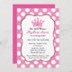 Comece sua festa com nosso convite de aniversário lindo com uma linda coroa princesa em um fundo de bolinhas rosa e branca. Perfeito para um convite de festas de primeiro aniversario princesa ou qualquer aniversário de meninas. Apenas personalize com suas informações e você está pronto para ir! Itens correspondentes, incluindo selos de postagem de aniversário, adesivos de favoritos, cartões de agradecimento e obrigado que você também está disponível em nosso compro.