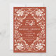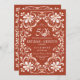 O convite de aniversário de casamento apresenta uma trabalho de arte de aquarela de um quadro floral branco em um fundo vermelho quente e sujo. O texto e o número de aniversários de etapas (10, 20, 30, 40, 50, 60, 70, 80 ou 90) podem ser facilmente personalizados. A parte traseira do convite inclui um cartão detalhado e um código QR verificável. Este convite é perfeito para uma elegante safra ou uma queda moderna do estilo boêmico ou uma celebração de inverno, assim como para todos os outros eventos da temporada.