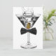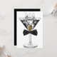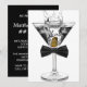Convite de aniversário de homem com copo de martini. Este convite de aniversário de gravata borboleta preta e copo de martini é ideal para uma festa de aniversário de qualquer idade, aposentadoria, evento corporativo de gravata preta, festa de martini ou despedida de solteiro, etc. Adicione seus detalhes na frente e/ou verso deste convite elegante de aniversário com gravata borboleta preta e copo de martini.
