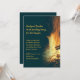 Convite de aniversário para ele. Papel de carta azul escuro com imagem de fogo em chamas e duas áreas de modelo de texto. Inclua a idade e o nome da honra no topo em letras maiores com as informações da parte abaixo. A fonte amarela e corajosa é fácil de personalizar com qualquer informação para celebrar ao ar livre ao redor do fogo. Papel de papelaria vertical com azul sólido ao contrário.