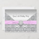 Prata elegante com fundo de cobertura de renda prateada com fita de cetim rosa e convite de aniversário 15 de quinceanera de centro de diamante.