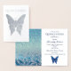 Simples, luxuoso, classudo, borboleta de folha de prata e espirais florais prateadas, combinadas com brilho real azul, design cintilante no interior - cartão de convite de Quinze Anos adorável com folha de prata.
