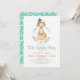 Teal e convite de aniversário de Raposa Laranja. O convite apresenta raposa de madeira e padrão de folhas de turquesa.