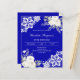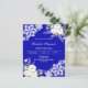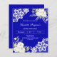 Para uma festa de inverno elegante. Um fundo azul real decorado com flores brancas, rosas e renda branca. Personalize e adicione seu nome e detalhes.