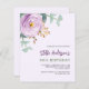Um fundo de cor lilás macio. Decorado com um rosa lilás e roxo e um verde de eucalipto verde de cor aquosa. Personalize e adicione seu nome e detalhes da festa. 1 folha = 1 convite impresso de borda a borda.