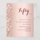 Para uma elegante festa de aniversário 50th (ou qualquer idade). Um fundo rosa dourado. Decorado com falso brilho. Personalize e adicione um nome e detalhes da parte. 1 folha = 1 convite impresso de borda a borda.