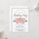 Esfregue rosas cor-de-rosa e coral em qualquer convite de aniversário etário com folhas cardíacas com brilho rosa. Elegante com uma tipografia moderna na moda.
