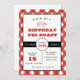Diversão Personalizada do CHURRASCO de Passagem de Passado, convite de festas de Convite de Aniversário com borda de xadrez de gingham vermelha e branca. Personalize usando as caixas "Editar este modelo de design" no lado direito do item ou clique no botão azul "Personalizar" para organizar o texto, alterar as fontes e as cores.