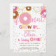 Convite de aniversário de rosquinhas cor-de-rosa,