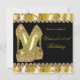 Convite de aniversário de salto alto com glitter dourado. Para deixar uma área de texto em branco, exclua o texto.