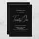 Este convite de aniversário chic e moderno apresenta um fundo preto elegante com tipografia na moda branca. A mistura de fontes ousadas serif e manuscritas destaca a idade do celebrante de uma forma elegante e atraente. Perfeito para festas de aniversário sofisticadas ou celebrações de marcos, este design exumenta elegância e simplicidade ao mesmo tempo que mantém uma aparência de eterno.