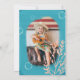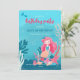 convite de aniversário de sereia. Cartão de convite com sereia com cabelo cor-de-rosa. A sereia está sentada sobre uma rocha e segurando uma grande concha em um fundo marinho azul com algas e peixes. Cartão de convite bonito com caráter marítimo para um chá de fraldas tímido para uma garota. Adicione seu próprio texto para personalizar o cartão de convite para torná-lo personalizado. Você pode alterar o nome, endereço e data da parte.