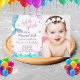 Adoráveis garotas fotografam convites de aniversário para a sereia. Colorida com azuis, lavanda e rosa e carregada da sua própria foto de aniversariante.