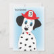 Este convite de aniversário é perfeito para o bombeiro pequeno futuro. O filhote de cachorro Dalmatian bonito veste feliz o chapéu do seu bombeiro com a idade da sua criança indicada. Personalize com seu próprio texto.