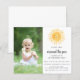 Este convite econômico é decorado com um sol sorridente em aquarela amarela e tipografia estilosa.