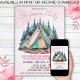 Convite de aniversário pink camping para uma festa de aniversário digital divertida para uma garota vibrante, um download digital ou um convite para impressão. Personalize nomes, datas e informações.