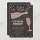 Convite de Chalkboard de Chalk e Confetti para Jantar de Aniversário de Casamento com Taça de Vinho de Diamante Dourado
