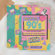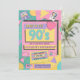 Junte-se a nós, nos anos 90! Convide todos para festejar na sua festa de aniversário especial dos anos 90 com um modelo de convite tema dos anos 90. Este convite de aniversário de 90 anos apresenta um arco-íris de cores com fita cassete, disquete e uma pulseira de amizade em um design de convite de estilo moderno.
