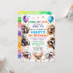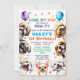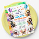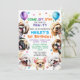 Convidados para Festa de aniversário de convite para cães. Para o menino ou para a menina. Um convite para ilustração de filhotes, feliz e sorridente, desenhado com confete e balões cercados por raças populares de cães pequenos, como shih tzu, pug, maltese, chihuahua, poodle e beagle. Todo o texto editável com o nome, a idade, a hora da festa, o endereço e o RSVP.