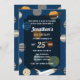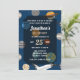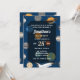Uma nave espacial voando através do convite de aniversário dos planetas.