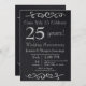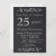O convite para comemoração de 25 de prata da textura negra clássica e chique pode ser personalizado.