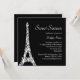 Um padrão vintage de pulgas de lise decora a torre de Eiffel neste convite de aniversário de Tres Paris. É fácil personalizar para qualquer idade.