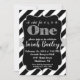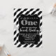 Convite de Aniversário de Um Ano Preto e Glitter Prata
