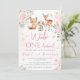 Animais de floresta roxos e flores cor-de-rosa e flores douradas cor-de-rosa, menina Winter Onederland, primeiro convite de aniversário.