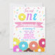 Este Doce Convite de Aniversário de Uma Rosquinha tem um design de frente e de trás. Seu pequeno vai adorar este Convite Rosquinha! Use esta Modelo de rosquinha para personalizar para a festa de aniversário temática de rosquinha da sua pequena.