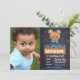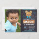 Convite de aniversário de urso azul com foto