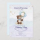 Um convite de aniversário de ursinho giro, com um pequeno ursinho marrom segurando um monte de balões de festas em várias cores. Este cartão é perfeito e não complicado para as crianças pequenas entenderem e entenderem que algo empolgante está acontecendo.
