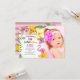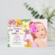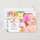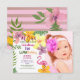 Convite de aniversário de verão tropical colorido, brilhante e adorável com foto personalizada e flores de aquarela.