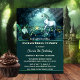 Um convite de aniversário mágico com uma cena de jardim encantada com uma fada e um unicórnio. Bonita para o aniversário de uma criança com um unicórnio, fada ou tema de vestir.