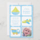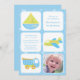 O convite de aniversário de fotos deste garoto tem um tema de viagem para garotos fofos. Existem três meios de transporte diferentes: um barco a vela, avião e um caminhão de lixo. Você pode personalizar facilmente as informações da parte nas três caixas diferentes com suas próprias. Na caixa inferior direita, você pode adicionar sua própria fotografia. © The Crafty Clip