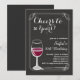 Convite de aniversário de vinho, convite para festa do tema vinho tinto