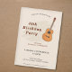 Um convite a uma festa de aniversário, com uma ilustração de um violão acústico sobre um fundo bege manchado. Ideal para uma festa de aniversário de música, mas também para um recital de violão clássico ou um concerto!