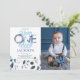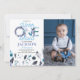Winter Onederland Birthday Invitation With Photo faz parte da coleção Winter Onederland. Este produto apresenta borrego de algodão branco e azul, neve. Feito principalmente em cores azuis e brancas com fontes de escrita manual. Explore mais produtos correspondentes em nossa loja.