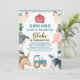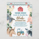 O convite de aniversário dos rapazes com tema de fazendas, com alguns animais de criação, celeiro, trator e um padrão de xadrez azul e folhagem. Ideal para o primeiro, segundo ou terceiro aniversário de um rapaz.