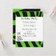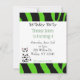 Uma bela zebra verde e negra acentua este convite de aniversário. Uma pequena zebra de desenho animado fica no canto. Personalizar conforme desejado.
