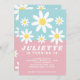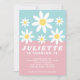 Convite de aniversário de margarida: diversão e festiva com margaridas brancas em um fundo rosa e alto. Excelente para todas as idades, crianças, etc.