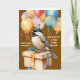 Convide os convidados com uma chickadee caprichosa em aquarela empoleirada em um presente, usando um chapéu de aniversário, com balões flutuando atrás. Este convite de festa de aniversário humorístico adiciona um toque lúdico com humor observacional, perfeito para amantes de pássaros e qualquer um que goste de uma celebração leve! conteúdo gerado.